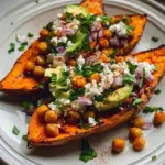 Jeder Bissen führt dich durch eine Symphonie aus Texturen: Der zarte, fast cremige Biss der Süßkartoffel paart sich mit dem knusprigen Kontrast der Kichererbsen und der frischen, kühlen Cremigkeit des Joghurts. Es ist ein Fest der Aromen – süß, herzhaft und dezent würzig – das ein Wohlgefühl in dir weckt. Egal, ob du es als herzhaftes Hauptgericht servierst oder als beeindruckende Beilage bei deiner nächsten Dinnerparty: Diese beladenen gerösteten Süßkartoffeln lassen jeden Tisch erstrahlen und sorgen dafür, dass deine lieben Gäste noch lange von diesem Erlebnis schwärmen.