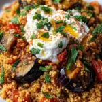 Ein mediterranes Gericht mit Bulgur, frischen Tomaten, Auberginen und Joghurt, das sowohl sättigend als auch nährstoffreich ist.