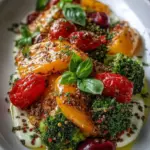Stell dir vor, wie der Duft von frisch gebratenem Gemüse in der Luft liegt, während die Farben von leuchtendem Paprika, knackigem Brokkoli und zarten Zucchini auf dem Teller miteinander spielen. Jeder Bissen ist ein Fest der Aromen, wo die herb-süßen Noten der Kräuter perfekt mit der Frische der Zitrone harmonieren. Du spürst die knusprige Textur, die den zarten Biss unterstützt, und das Olivenöl rundet die gesamte Erfahrung mit seiner samtigen Fülle ab. Einfach gesagt, dieses Gericht ist nicht nur eine Mahlzeit; es ist eine Feier des Geschmacks, die dich zu neuen kulinarischen Höhen führt.