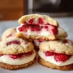 Diese gefüllten Kekse vereinen die süße Frische von Erdbeeren mit einer cremigen Käsekuchenfüllung, ideal für jeden Anlass.
