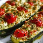 In der heutigen Zeit, wo das Kochen oft hektisch und unpersönlich wirkt, gibt es wenige Gerichte, die sofort ein Gefühl von Heimat und Geborgenheit vermitteln. Die Ofen-Zucchini mit cremiger Feta-Tomaten-Füllung sind genau das – ein zauberhaftes Gericht, das sowohl das Auge als auch den Gaumen erfreut. Bei jedem Bissen entfaltet sich die Kombination aus dem zarten, leicht süßlichen Zucchini-Fleisch und der herzhaften, cremigen Füllung. Der unverwechselbare, salzige Geschmack des Feta-Käse harmoniert perfekt mit den saftigen Kirschtomaten und dem knusprigen Oregano, während der Duft von gebackenem Knoblauch durch die Küche zieht und sofortige Vorfreude auf das bevorstehende Essen weckt.