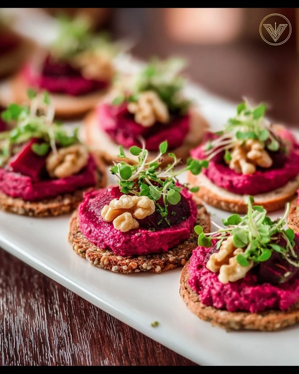 Pink Canapés mit Rote-Bete-Hummus